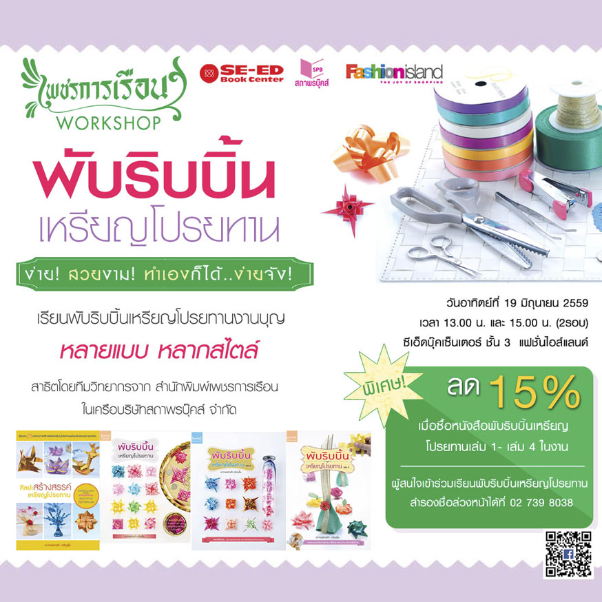 กิจกรรมเพชรการเรือน Workshop พับริบบิ้น เหรียญโปรยทาน