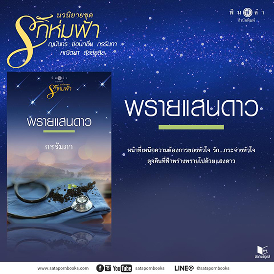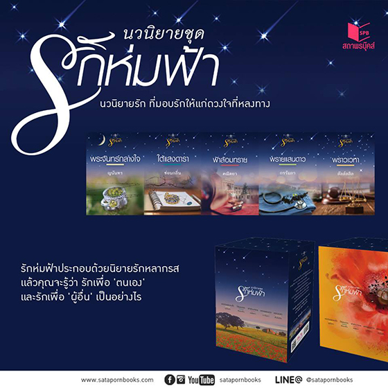 นวนิยายชุดรักห่มฟ้า เปิดให้สั่งซื้อแล้วบนเว็บไซต์ www.satapornbooks.com และวางขายในงานมหกรรมหนังสือระดับชาติ ครั้งที่ 21 บูท สถาพรบุ๊คส์ B02 โซนเพลนารี ฮอลล์ วันที่ 13-24 ตุลาคม 2559