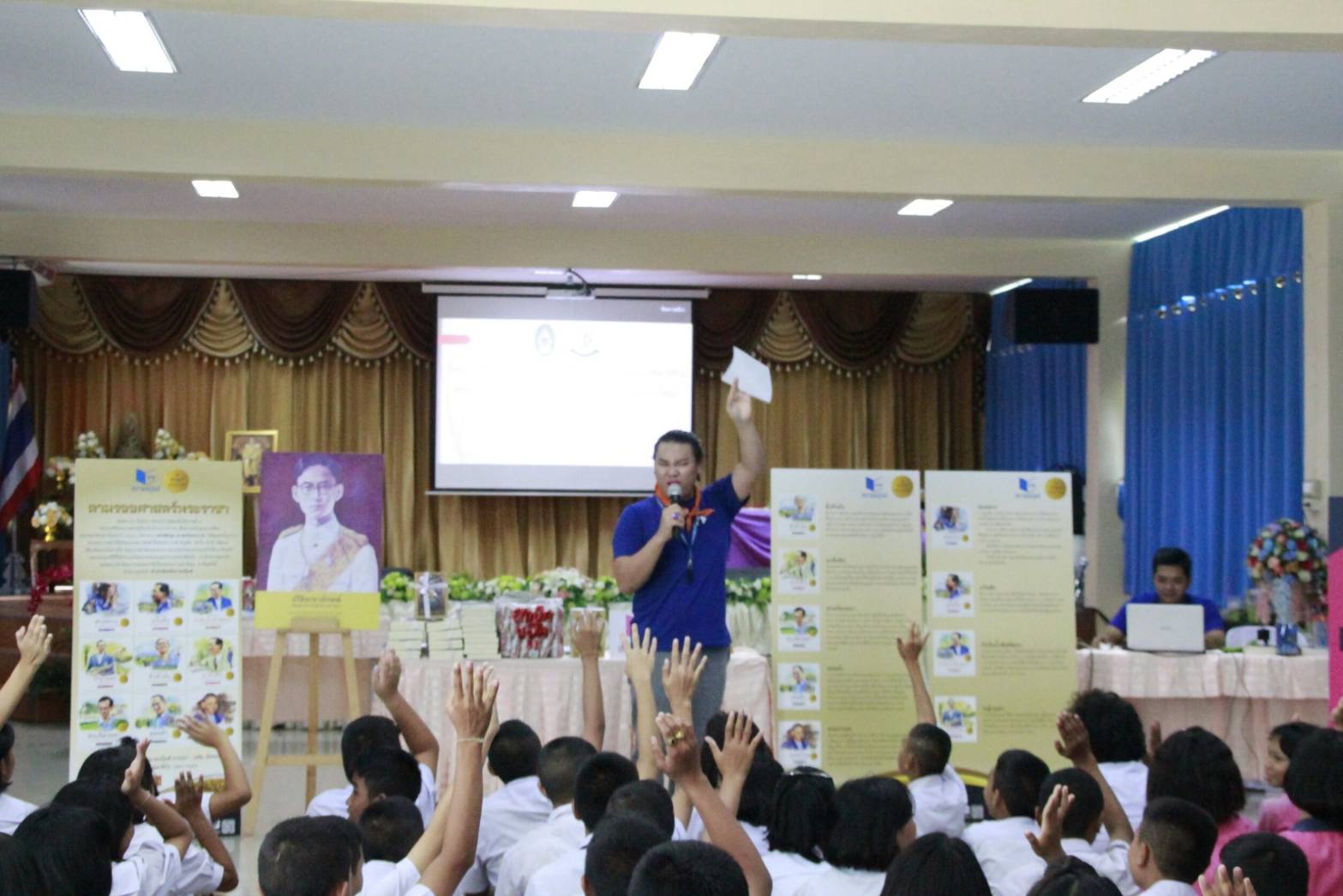 ทีมงานกิจกรรม “สถาพรบุ๊คส์” นำกิจกรรม 'ตามรอยศาสตร์พระราชา' ไปร่วมสร้างสำนึกแห่งพระมหากรุณาธิคุณให้กับนักเรียนชั้นมัธยมศึกษาปีที่ 2 โรงเรียนบ้านสวนหลวง กระทุ่มแบน สมุทรสาคร ซึ่งนักเรียนที่เข้าร่วมกิจกรรมได้เรียนรู้โครงการในพระราชดำริ พระเจ้าอยู่หัวรัชกาลที่ 9 เพื่อตามรอยศาสตร์พระราชาอย่างเข้าใจและสนุกสนาน เมื่อ 28 กรกฎาคม 2560