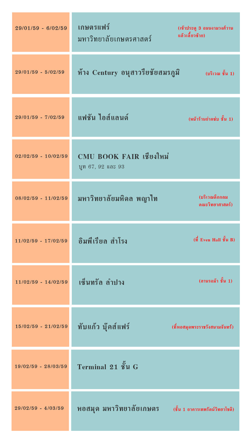 ตารางออกบูท สถาพรบุ๊คส์เดือนกุมภาพันธ์