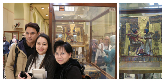 1.พิพิธภัณฑ์แห่งชาติ ณ กรุงไคโรหรือที่เราเรียกกันสั้นๆ ว่าพิพิธภัณฑ์ไคโร เป็นสถานที่ซึ่งไม่ควรพลาดอย่างยิ่ง นอกจากจะเป็นที่รวมโบราณวัตถุอันทรงคุณค่าทางประวัติศาสตร์ไว้นับแสนชิ้นแล้ว ยังทำให้เข้าใจภูมิปัญญาและความรู้ของคนในยุคนั้นมากขึ้น ทำให้การไปชมโบราณสถานต่างๆ ต่อจากนี้จะกลายเป็นเรื่องสนุกและเพลิดเพลินอย่างยิ่ง ชญาน์พิมพ์ตั้งใจว่าจะกลับไปอีกครั้งและแช่อยู่ในพิพิธภัณฑ์ทั้งวันเลยค่ะ แค่ได้เข้าไปชมหน้ากากทองคำของตุตันคามุนก็คุ้มแล้ว โบราณวัตถุในห้องแสดงสมบัติของตุตันคามุนนั้นสวยงามแทบลืมหายใจทุกชิ้นเลยค่ะ โดยเฉพาะอย่างยิ่งทับทรวงสการับที่แกะมาจากหินสะเก็ดดาวตก “น้ำตาสวรรค์” อันเป็นที่มาของนิยายเรื่อง “พรางคิมหันต์” ที่ชญาน์พิมพ์ดั้นด้นไปเก็บข้อมูลมาในครั้งนี้