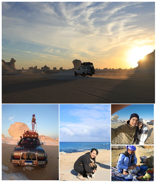 7.เที่ยวโอเอซิส บาฮาริยะห์ ท่องทะเลทรายขาว ทะเลทรายดำและตั้งแคมป์ดูดาวกลางทะเลทราย เป็นสิ่งที่ชญาน์พิมพ์ไม่คิดมาก่อนว่าจะได้ทำในชีวิตนี้ ตอนที่บอกเพื่อนสาวว่าในพลอตนิยายมีฉากไล่ล่ากลางทะเลทรายและมีเรื่องราวของชนเผ่าเบดูอินยุคปัจจุบันมาเอี่ยวอยู่หน่อยๆ เธอก็จัดให้ทันทีด้วยการติดต่อพี่ขวัญชัยหรือพี่นาอีมผู้แสนน่ารักให้พาเราผจญภัยไปในทะเลทราย ซึ่งบอกตรงๆ ว่าคนไทยไม่ค่อยไปกันเท่าไหร่นะคะ ส่วนมากจะเห็นแต่คนจีนหรือฝรั่งที่ไปกันเสียมากกว่า เพราะส่วนมากจะกลัวความลำบากกันค่ะ การจะเข้าไปในทะเลทรายนั้นต้องใช้รถโฟร์วีลคันเล็กและวิ่งด้วยความเร็วสูงตลอดเวลาเพื่อไม่ให้ล้อจมทราย แน่นอนว่าเสียงของพวกเราจะร้อง “โอ มาย ก็อด” กันตลอดทาง บางทีล้อก็จะไต่โขดหินข้างหนึ่ง ส่วนอีกข้างวิ่งอยู่ในทราย ได้ฉากไล่ล่าสมใจละค่ะ แต่ก็เล่นเอาเครื่องในไปกองรวมอยู่ผิดที่เหมือนกัน โชคดีที่มาห์มู้ด โชเฟอร์เบดูอินของเราเก่งมาก ขับรถไปโทรศัพท์ไปมือเดียวยังได้ เป็นผู้ชาย 10 in 1 คือขับรถ กางเต๊นท์ ทำอาหาร (อร่อยด้วย) ถ่ายรูปสวยมาก เอนเตอร์เทนก็ได้