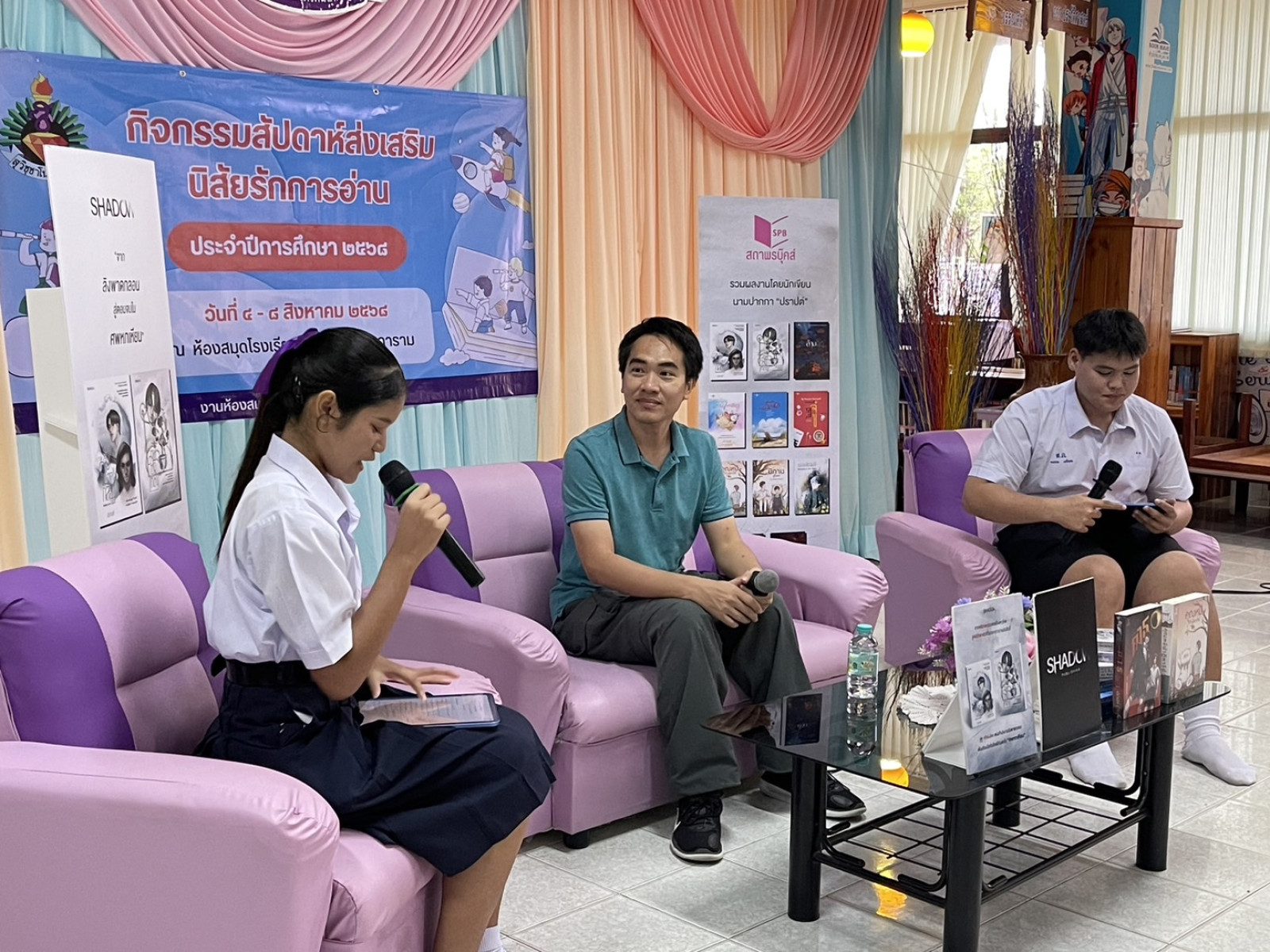 ภาพบรรยากาศกิจกรรมนักเขียนพบนักอ่าน กับ ‘ปราปต์’ ในงานสัปดาห์ส่งเสริมรักการอ่าน ประจำปีการศึกษา 2568 จัดโดยห้องสมุดโรงเรียนสามชุกรัตนโภคาราม จ.สุพรรณบุรี โดยในงานมีน้องๆ นักเรียน นักอ่านสนใจเข้าร่วมกิจกรรมว่า 100 คน บรรยากาศเป็นไปด้วยความสนุกสนานและเป็นกันเอง