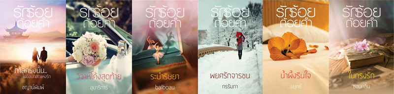 รักร้อยถ้อยคำ” 6 เรื่อง 6 รส จาก 6 นักเขียนชื่อดัง ได้แก่ “ซ่อนไว้ในกรงรัก” โดย ซ่อนกลิ่น, “น้ำผึ้งรินใจ” โดยอยุทธ์, “กาลครั้งนั้น...ในอ้อมกอดแห่งรัก” โดย ชญาน์พิมพ์, “วิวาห์โค้งสุดท้าย” โดย อุมาริการ์, “ระบำริษยา” โดย baiboau และ “พยศรักจารชน” โดย กรรัมภา