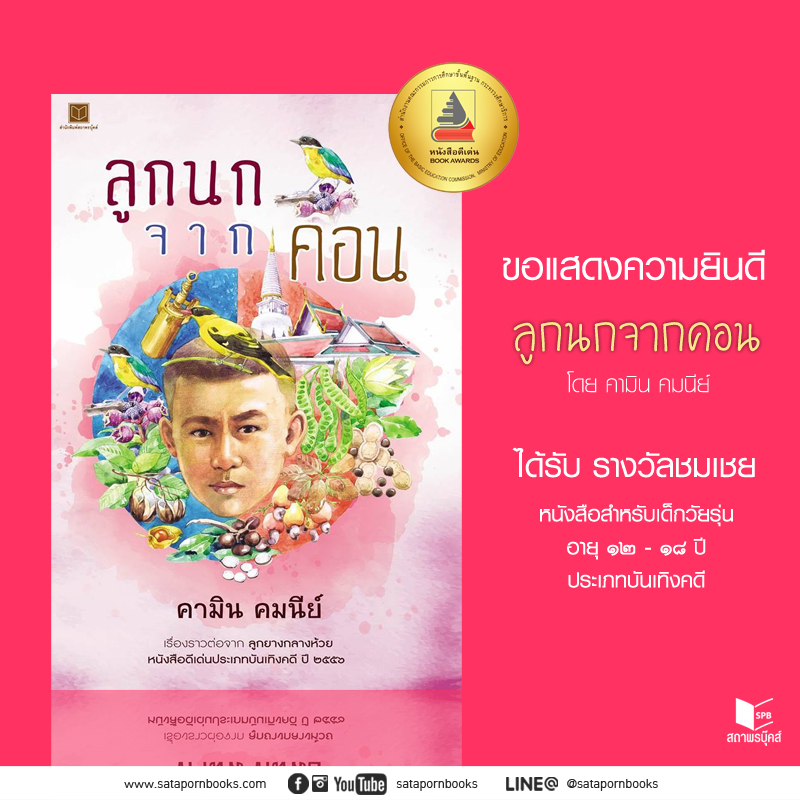 ลูกนกจากคอน ได้รับรางวัลชมเชย หนังสือสำหรับเด็กวัยรุ่น อายุ ๑๒-๑๘ ปี ประเภทบันเทิงคดี