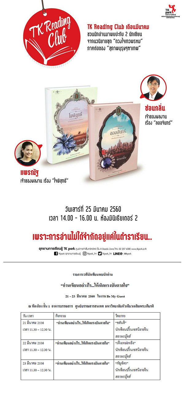 TK Book Club เดือนมีนาคม พบ 2 นักเขียน 'แพรณัฐ' 'ซ่อนกลิ่น'