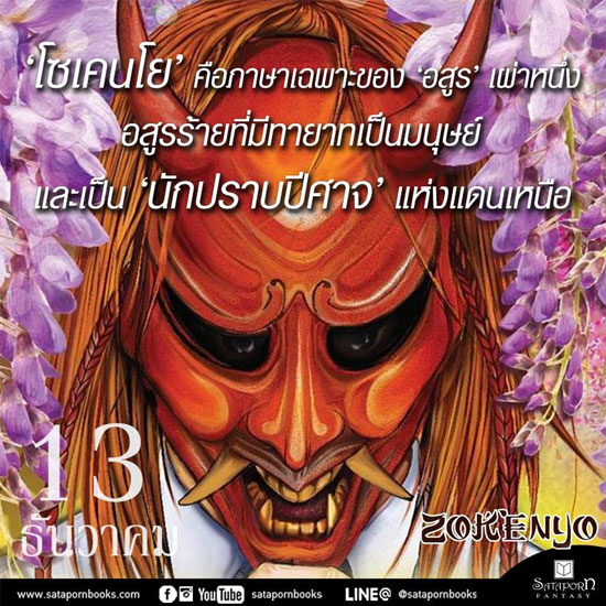 “ผู้เขียนนั้นเริ่มมาเขียนนิยายได้เพราะมาจากการผู้เขียนชอบเขียนการ์ตูนค่ะ แต่เพราะตอนนั้นยังเด็ก และรู้สึกว่าการเขียนการ์ตูนเรื่องยาวเป็นเรื่องใหญ่ ซ้ำยังยุ่งยาก รวมถึงตอนนั้นเพิ่งรู้ว่ามีเว็บสำหรับลงนิยายได้ ซ้ำเราก็อ่านนิยายมาบ้าง เลยอยากลองแต่งการ์ตูนที่คิดไว้เป็นนิยายดู จึงได้ลองแต่งนิยายลงเว็บเป็นครั้งแรก หลังจากนั้นก็เขียนนิยายมาถึงปัจจุบันค่ะ” ธนาภา นักเขียนเจ้าของนามปากกา B13s.t เล่าถึงเส้นทางนักเขียนของตัวเอง โดยตอนนี้เธอสร้างสรรค์ผลงานออกมาเป็นรูปเล่มแล้ว 2 เรื่อง นั่นคือ Cubic และล่าสุดคือ Zokenyo อสูรตนสุดท้าย ซึ่งเรื่องนี้เป็นผลงานแรกที่เธอเขียนขึ้นจากการ์ตูนเรื่องยาวที่คิดไว้ ดังนั้นจึงมีกลิ่นของการ์ตูนผู้ชายและผู้หญิงแบบสมัยก่อนร่วมกัน มีเรื่องของปีศาจ เทพเจ้า นักปราบปีศาจ การต่อสู้ และเรื่องรักพอหอมปากหอมคอ “โซเคนโยเริ่มลงมือเขียนครั้งแรกตอนเราอยู่มัธยมปลายค่ะ น่าจะสักม.5 ก่อนได้วางแผงเป็นเล่มช่วงระหว่างรอขึ้นปีหนึ่งของศิลปากร ซึ่งแรงบันดาลใจก็ง่ายๆ ค่ะ เราเป็นคนอ่านการ์ตูน ดังนั้นบอกได้เลยว่ามาจากการ์ตูนบู๊ๆ ของเด็กผู้ชายที่เราชอบอ่านนั่นแหละค่ะ ตบๆ ผสมๆ เขย่าๆ (ฮา) ก็ออกมาเป็นโซเคนโยที่เขียนออกมาครั้งแรกค่ะ” Zokenyo อสูรตนสุดท้าย เคยตีพิมพ์มาแล้วเมื่อสิบปีก่อน และ B13s.t ได้นำกลับมารีไรต์อีกครั้ง โดยพยายามคงของเก่าไว้ให้มากที่สุด เพิ่มข้อมูลต่างๆ ให้แน่นมากขึ้น ตบ ปรับ และแต่งให้เรื่องสมเหตุสมผลมากขึ้น แต่การดำเนินเรื่องหลักยังเป็นแบบเดิม “เมื่อเราโตและกลับไปอ่านงานเก่าๆ ของตนจะพบข้อผิดพลาดได้เยอะต่างจากตอนนั้นตามประสบการณ์ที่มากขึ้น กระนั้นสิ่งที่ปฏิเสธไม่ได้เลยก็คือเพราะตอนนั้นเราแต่งมันด้วยความสนุกจากใจจริงๆ เราไม่ตั้งเงื่อนไขกับมันมาก ไม่คิดมากตอนที่แต่ง ปล่อยตามใจและอารมณ์ล้วนๆ ดังนั้นแม้จะเห็นข้อผิดพลาดมากมายแต่ก็ยังคงสนุกมากสำหรับเรา มันมีกลิ่นของ ความดิบ ความไม่รู้เดียงสา มันเลยยังคงมีเสน่ห์สำหรับเรา และแบบนั้นเราก็เลยยังอยากคงกลิ่นเดิมๆ ของก่อนรีไรต์ไว้อยู่ จึงพยายามเพิ่มเนื้อหาเข้าไปมากกว่าการตัด หรือสร้างขึ้นใหม่ทั้งหมด ซึ่งสรุปก็คือโซเคนโยรีไรต์ฉบับปัจจุบันนี้ก็ยังคงดำเนิน เรื่องเช่นเดิม แต่สมเหตุสมผลและข้อมูลแน่นขึ้น มีการปรับชื่อตัวละครบ้างบางตัว และเพิ่มเนื้อหาเข้าไปเยอะกว่าเดิมค่ะ” ฉากและเรื่องของนวนิยายเรื่องนี้จะเกิดขึ้นที่ญี่ปุ่น ดังนั้นผู้เขียนจึงต้องทำการบ้านอย่างหนักกับการหาข้อมูล ทั้งจากหนังสือ อินเท