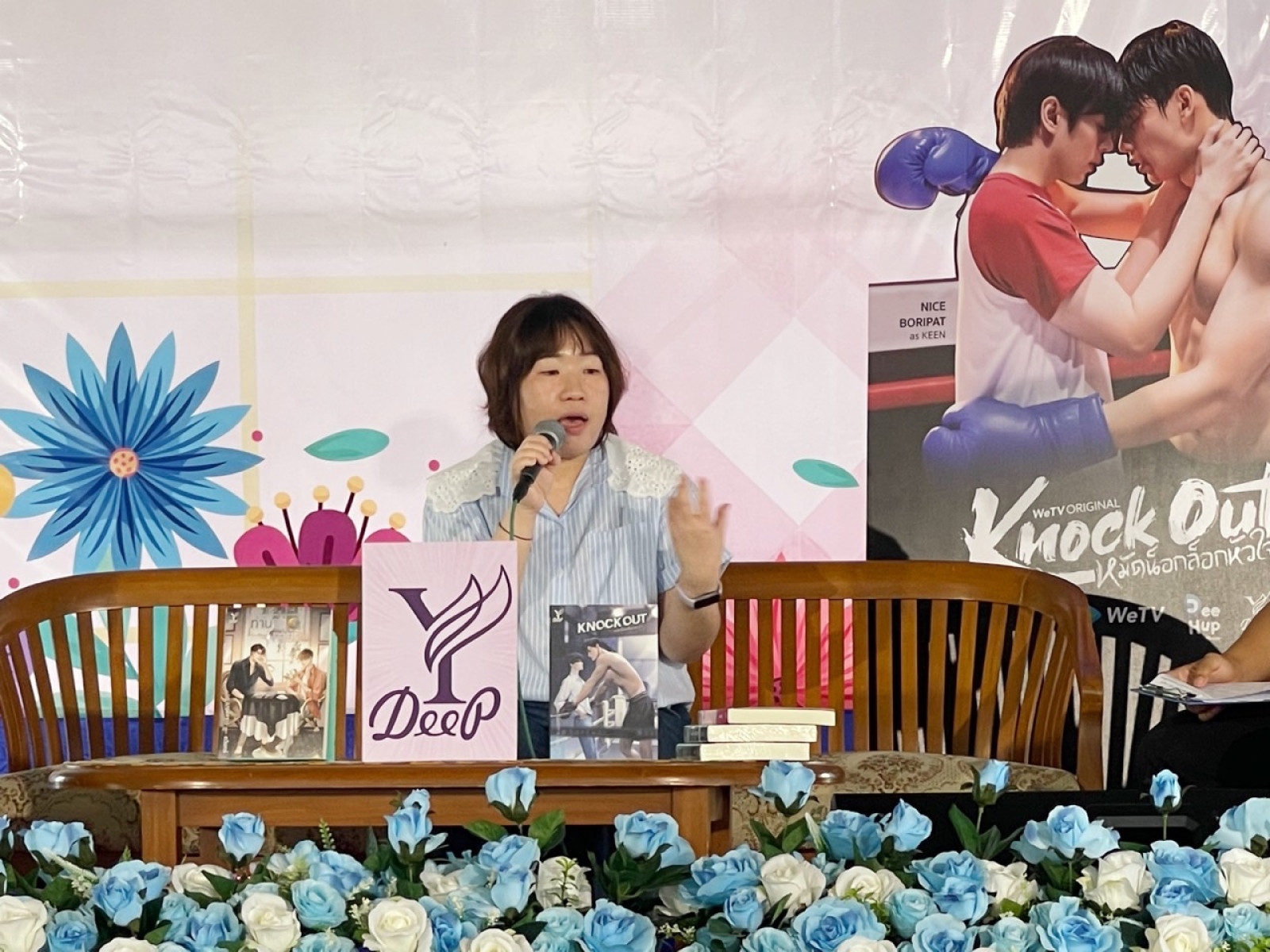 บริษัท สถาพรบุ๊คส์ จำกัด นำ  ‘ดวินทร์’ นักเขียนเจ้าของผลงานนิยายวายเป็นซีรีส์กระแสแรงอย่าง ‘Knockout หมัดน็อกล็อกหัวใจ’ ไปร่วมเสวนา พบปะพูดคุยกับน้องๆ นักอ่าน นักเรียน ในกิจกรรมนักเขียนพบนักอ่านเนื่องในวันสุนทรภู่ วันภาษาไทยแห่งชาติ และสัปดาห์ห้องสมุด ปีการศึกษา 2568 ณ โรงเรียนศรัทธาสมุทร จ.สมุทรสงคราม บรรยากาศเป็นไปอย่างอบอุ่น สนุกสนาน และเป็นกันเอง