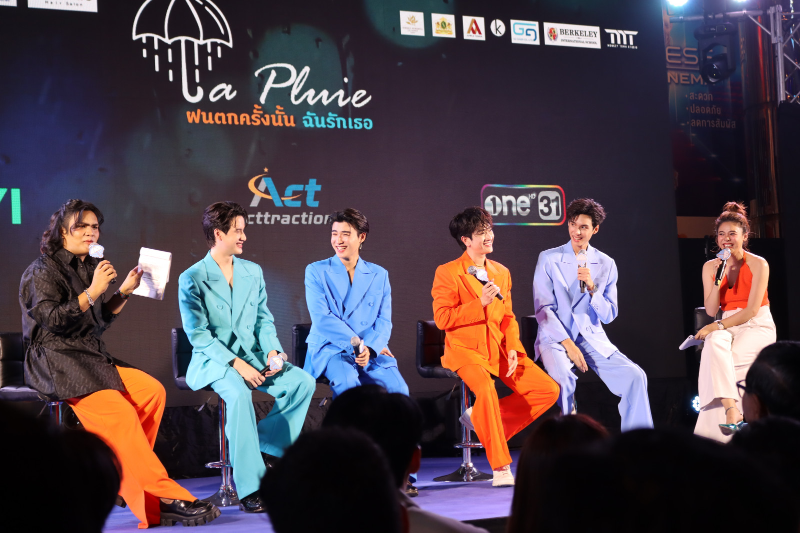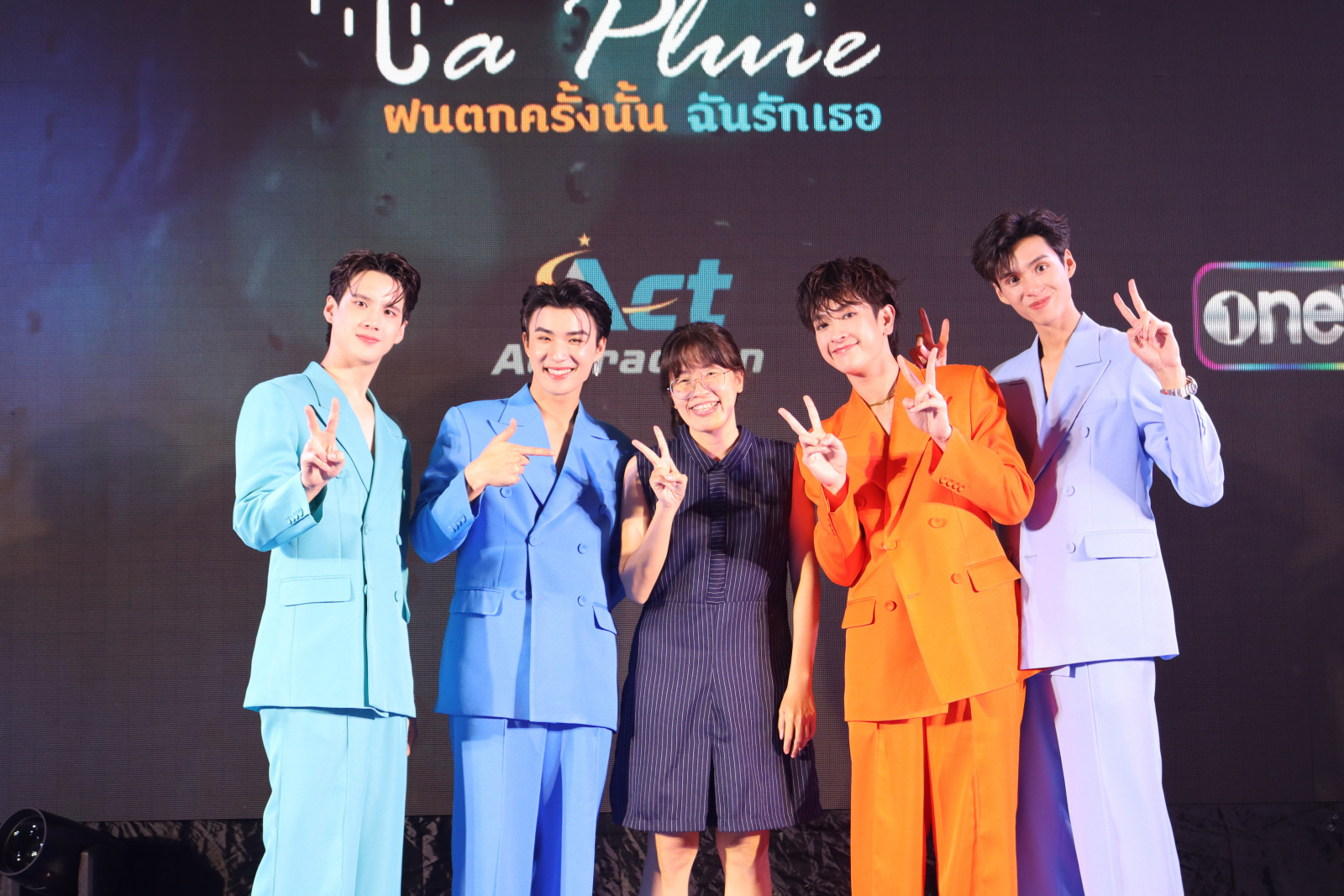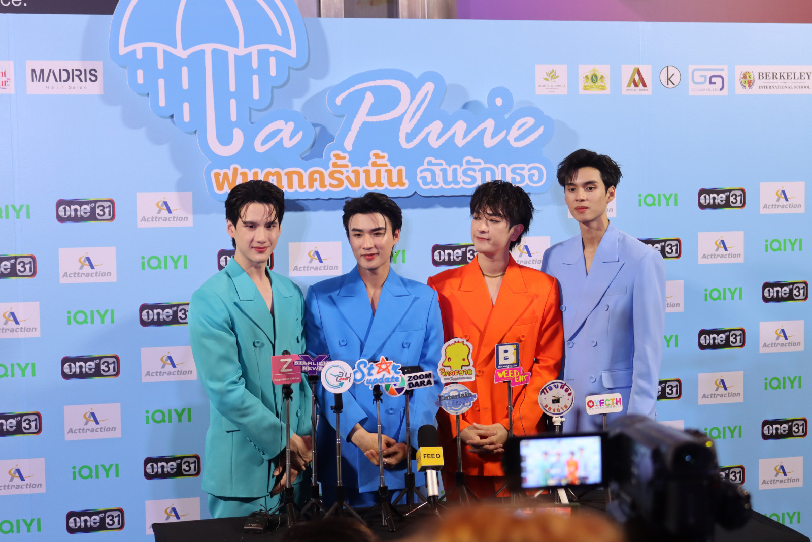 28 เมษายน 2566 : Acttraction Entertainment, ONE31 และ iQIYI (อ้ายฉีอี้) นำทีมผู้จัด ณัฐ-ณัฐพล จุฬางกูร และเอก รัฐวิชญ์ พีระศราโรจน์ พร้อมด้วย คุณประพาฬรัตน์ ชัยชูพฤกษ์ ผู้อำนวยการฝ่ายพัฒนารายการ และปฏิบัติการธุรกิจ ช่อง ONE31 และคุณผ่านศึก ธงรบ ผู้อำนวยการอ้ายฉีอี้ ประจำประเทศไทย ร่วมด้วยทีมนักแสดง นำทีมโดย พี-พีรวิชญ์ พลอยนำพล, ไตเติ้ล-ธนธร เสนางคนิกร, เสือ-กฤษณะพงศ์ ศรีภัททิยานนท์, คอปเตอร์-นันทพงศ์ วงศ์สกุลยง และฮาน่า-ทัศนาวลัย จักรพงษ์ และทีมนักแสดงอีกมากมาย จัดงานแถลงข่าวเปิดตัวซีรีส์ “LA PLUIE ฝนตกครั้งนั้นฉันรักเธอ” ณ อินฟินิซิตี้ ฮอลล์ @ พารากอน ซินิเพล็กซ์ ชั้น 5 สยามพารากอน ภายในงานยังมีการเปิดตัว Boy Band และ Girl Group ของค่าย Acttraction Entertainment พร้อมรับชม EP1 พร้อมกันในโรงภาพยนตร์ร่วมกับแขกผู้มีเกียรติและแฟนคลับผู้โชคดี ซึ่งงานในครั้งนี้ได้รับความสนใจจากแฟนๆ อย่างล้นหลาม