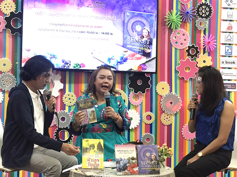 8 ก.ย. 2563 สถาพรบุ๊คส์นำโดย ดร.สุภัคชญา โลกิตสถาพร พา บก.พี่แหม่ม และ บก.พี่นพปี้ ร่วมพูดคุยและพยากรณ์ดวงชะตากับ 'อ.หญิง จุฑามาศ ณ สงขลา' ในงานจัตุรัสจามจุรีบุ๊คแฟร์ #12 ณ จามจุรีสแควร์ ในหัวข้อ 'พลังหินและตัวเลขศาสตร์แห่งการพยากรณ์' การบำบัดด้วยหินและการพยากรณ์ดวงชะตาด้วยตัวเลขวันเกิด พร้อมพยากรณ์ดวงชะตาให้ผู้เข้าชม โดยมีผู้ให้ความสนใจการบำบัดด้วยพลังหินและการทำนายดวงชะตาชีวิตด้วยตัวเลขมากมาย