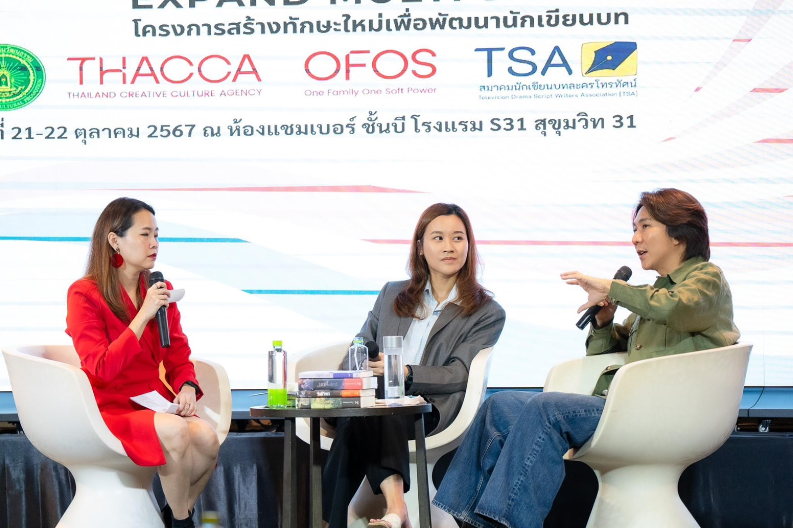 คุณเจติยา โลกิตสถาพร ผู้ช่วยกรรมการผู้จัดการ และบรรณาธิการบริหารบริษัทสถาพรบุ๊คส์ ร่วมเป็นวิทยากรในโครงการสร้างทักษะใหม่เพื่อพัฒนานักเขียนบท ซึ่งจัดโดยกรมส่งเสริมวัฒนธรรม THACCA  OFOS  TSA  (สมาคมนักเขียนบทละครโทรทัศน์) ณ โรงแรม S 31 สุขุมวิท ในวันจันทร์ที่ 21 ตุลาคม 2567 ที่ผ่านมา