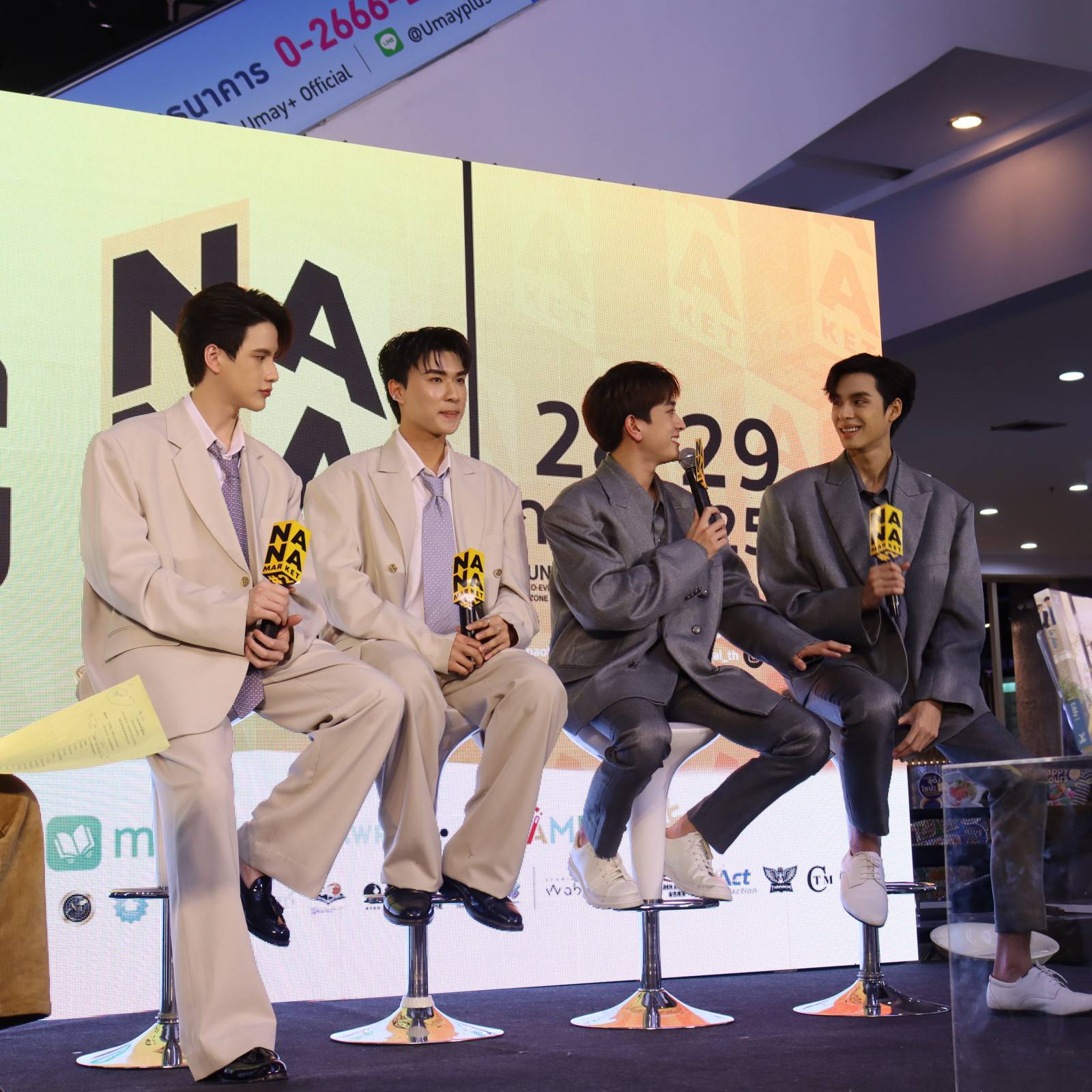 ภาพบรรยากาศงาน Meet & Greet พี พีรวิชญ์, ไตเติ้ล ธนธร, คอปเตอร์ นันทพงศ์ และเสือ กฤษณะพงศ์ สี่นักแสดงหนุ่มสุดฮอตจากซีรีส์วายเรื่อง ‘La Pluie ฝนตกครั้งนั้นฉันรักเธอ’ พร้อมทั้ง Eddy นักเขียน งานนี้นอกจากจะเป็นการพบปะทักทายแฟนๆ นักอ่านและแฟนคลับของนักแสดงแล้วยังเป็นการพูดคุยถึงเรื่องราวในเวอร์ชันนวนิยายจากนักเขียนอีกด้วย โดยกิจกรรมดังกล่าวจัดขึ้นในงาน #NanaMarket2 ซึ่งได้รับความสนใจจากบรรดาแฟนๆ ที่ขนมาให้กำลังใจกันเป็นจำนวนมาก