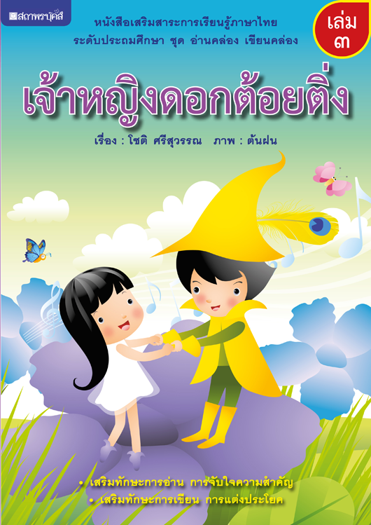 เรื่องราวของเจ้าหญิงดอกต้อยติ่งที่ท่องเที่ยวไปในทุ่งหญ้ากว้างพร้อมกับผีเสื้อปีกสวย ระหว่างทางต้องเผชิญกับกิ้งก่ายักษ์ แต่ได้รับการช่วยเหลือจากเจ้าชายแห่งทุ่งหญ้าผู้กล้าหาญ แล้วทั้งสองก็อยู่ด้วยกันอย่างมีความสุข ???????????????????????? หลักภาษาไทย - ไตรยางค์, สระ เ-ะ, เ-, แ-ะ, แ-, โ-ะ, โ-, วรรณยุกต์, บทดอกสร้อย, ภาษาถิ่น หนังสือเสริมสาระการเรียนรู้ภาษาไทย ชุด อ่านคล่อง เขียนคล่อง สอดคล้องตามสาระการเรียนรู้แกนกลาง กลุ่มสาระการเรียนรู้ภาษไทย หลักสูตรการศึกษาขั้นพื้นฐาน พุทธศักราช ๒๕๕๑ มุ่งเน้นสาระที่ ๔ คือ หลักการใช้ภาษาไทย เพื่อให้ผู้เรียนเข้าใจธรรมชาติของภาษา โดยบูรณาการสาระการอ่าน การเขียน การแจกลูกสะกดคำ ในแต่ละเล่มแบ่งเป็น ส่วนเนื้อเรื่องขนาดสั้นสำหรับอ่าน และส่วนของหลักภาษาไทย มีตัวอย่างและแบบฝึกหัดเพื่อความเข้าใจ ภาพประกอบสี่สีสวยงาม เหมาะสำหรับครูอาจารย์ ผู้ปกครอง รวมทั้งตัวผู้เรียนเอง ในการพัฒนาทักษะภาษาไทยให้ผู้เรียนสามารถ ?อ่านเก่ง เขียนคล่อง พูดได้ ใช้เป็น? อย่างถูกต้อง ทางสำนักพิมพ์จัดส่งหนังสือได้ในวันที่ 11 มิถุนายน 2555 ค่ะ